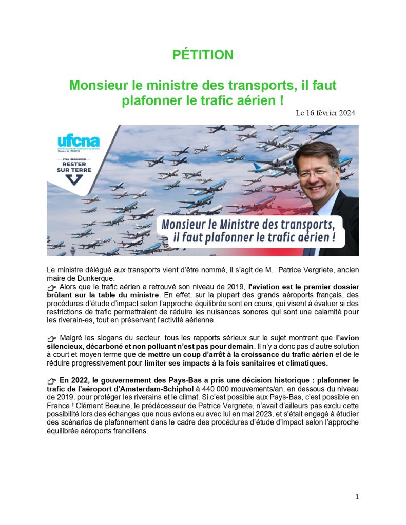 PÉTITION – Monsieur le ministre des transports, il faut plafonner le trafic aérien !
